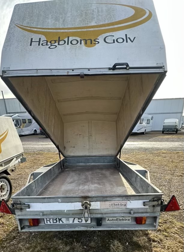 NYBESIKTAT OCH GENOMGÅNGET SLÄP MED KÅPA , SITTER SOMMARDÄCK PÅ